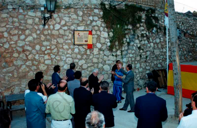 El 27 de julio de 1.998 se rindió homenaje a Melchor López Ximénez, declarándole hijo predilecto de la Villa de Hueva, también se renombró la plaza mayor con su nombre y se instaló una placa conmemorativa (imagen inferior) que recuerda al músico nacido en Hueva. |